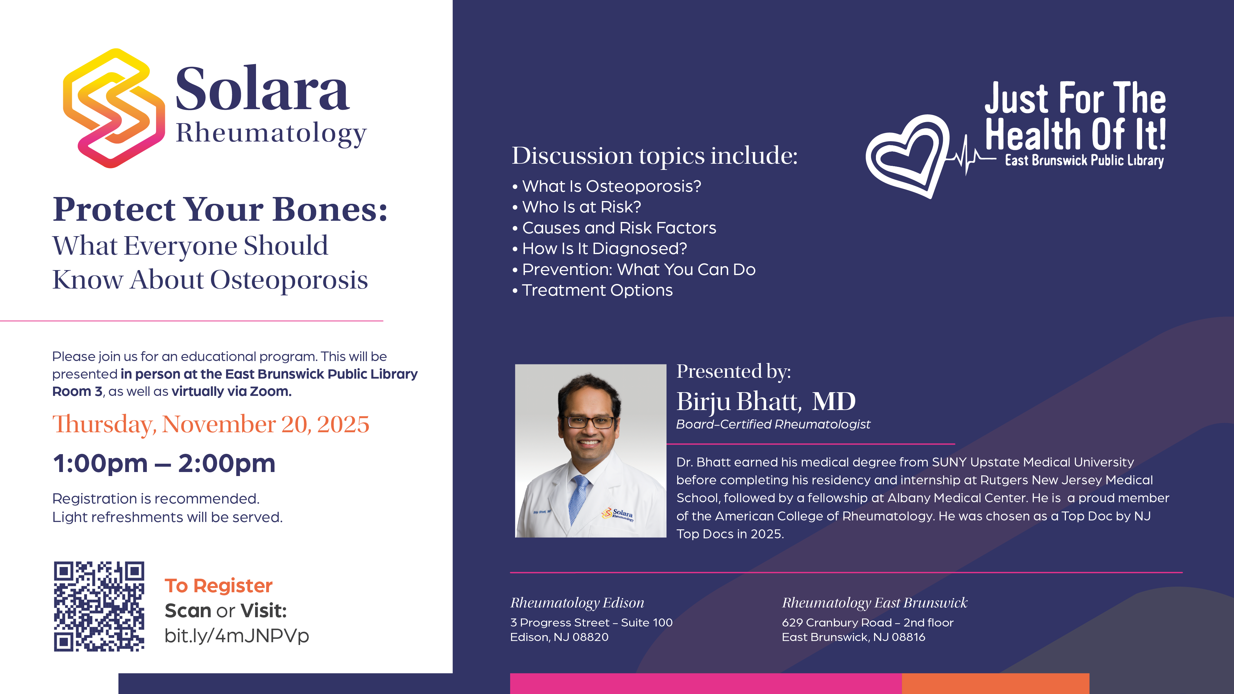 Dr. Humaira Adenwalla, Center for Arthritis & Osteoporosis is now part of Solara Rheumatology. New website. Same patient-centered services and compassionate care.